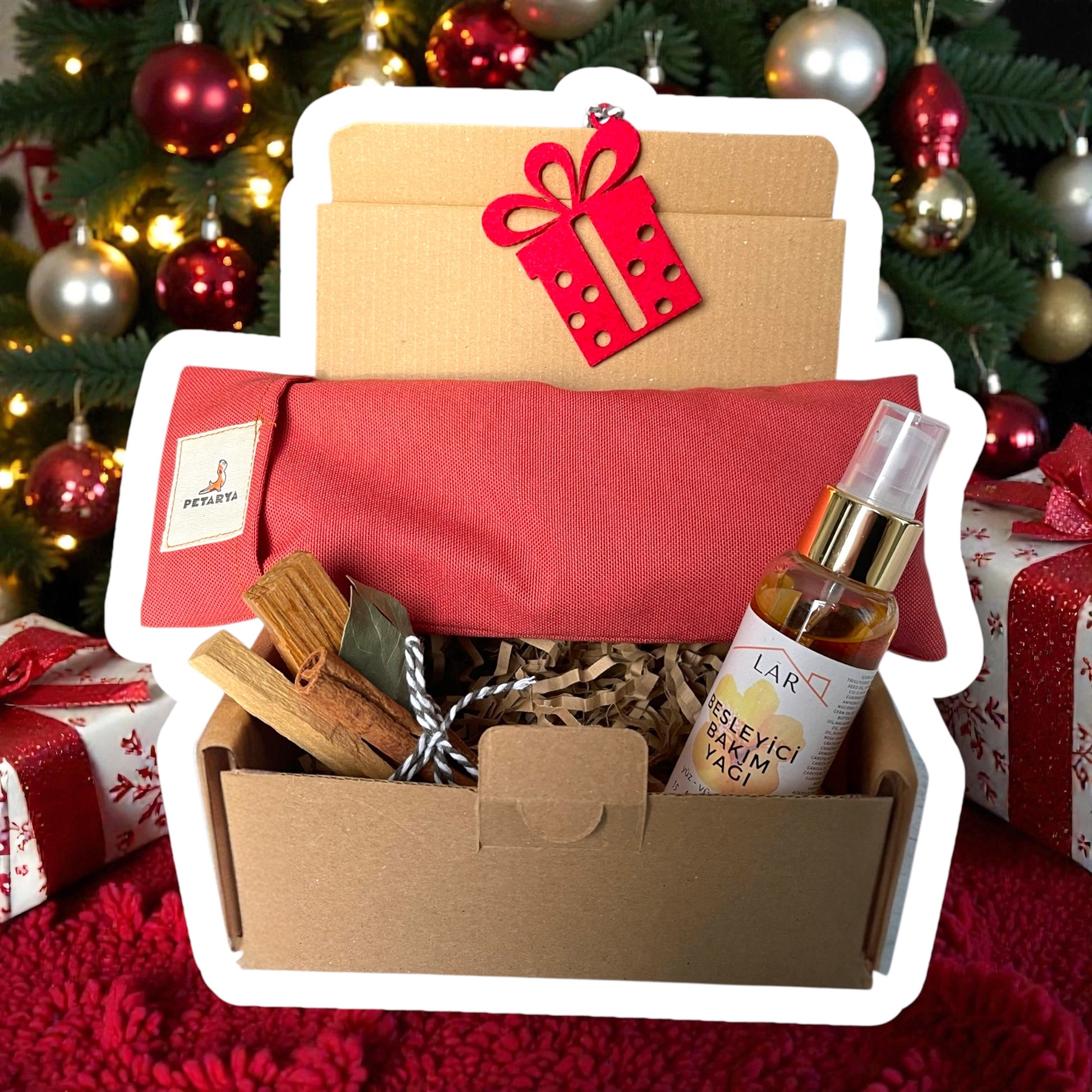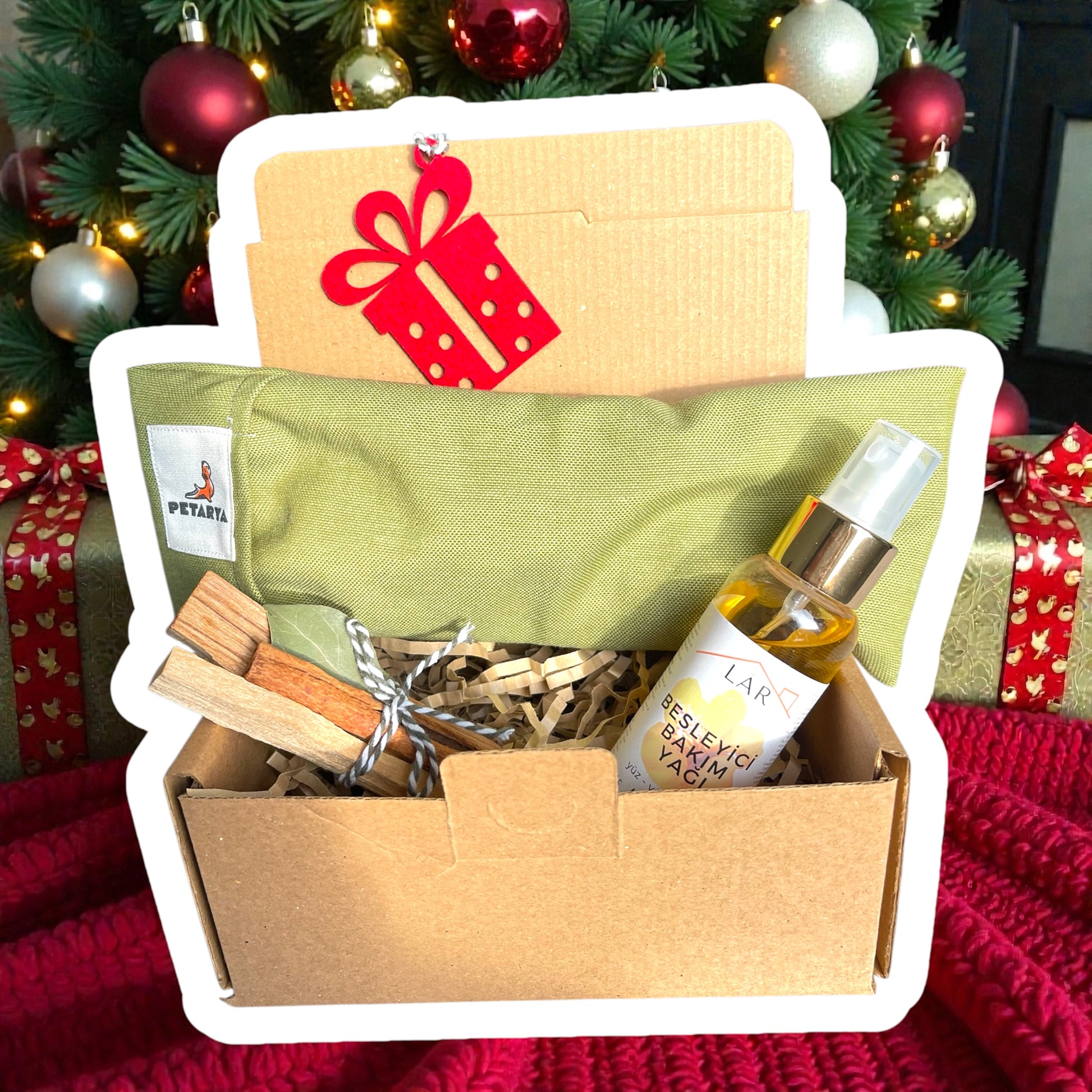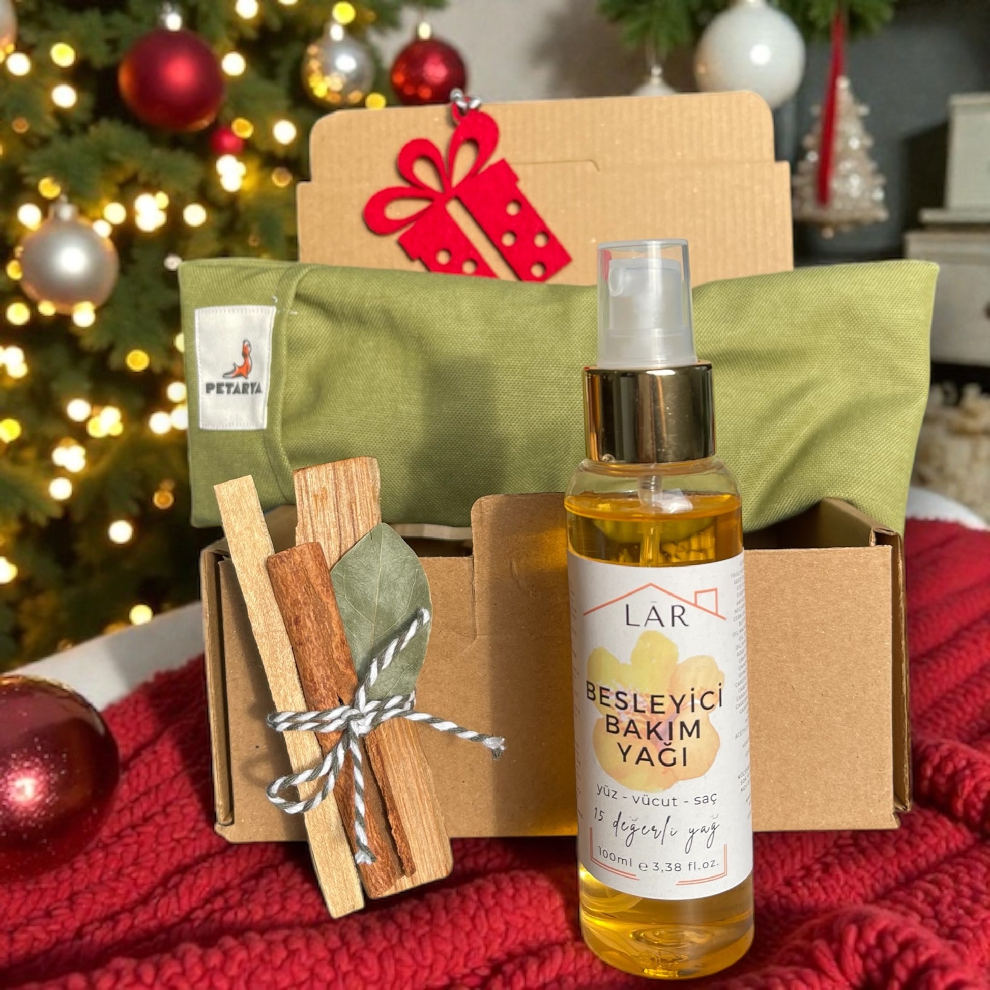 Yeni Yıl Hediye Seti - Besleyici Kuru Yağ + Göz Minderi + 2 Adet Palo Santo